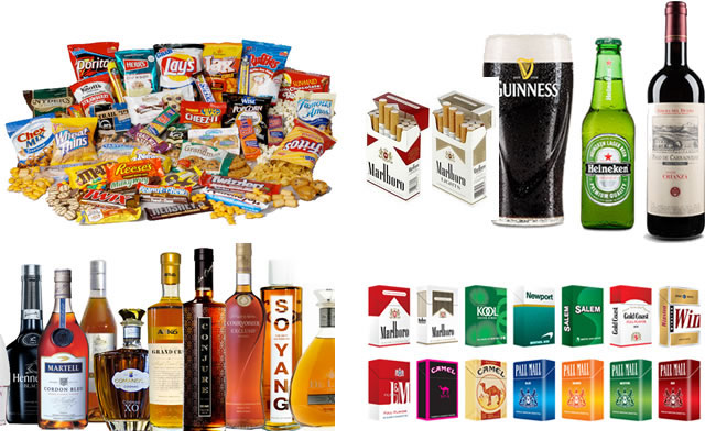 Productos Libres de Impuestos: Alimentos, bebidas y otros artículos de consumo sin impuestos.